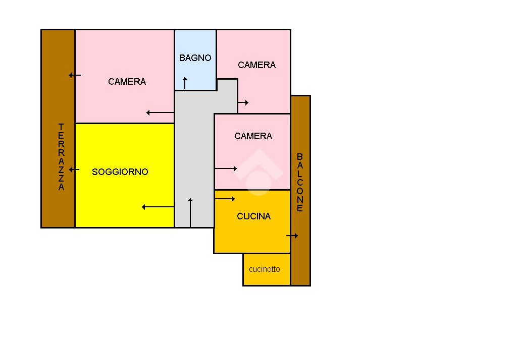 Proseguendo verso la zona notte, troviamo due camere matrimoniali di cui una con accesso alla terrazza e una singola con affaccio sul balcone