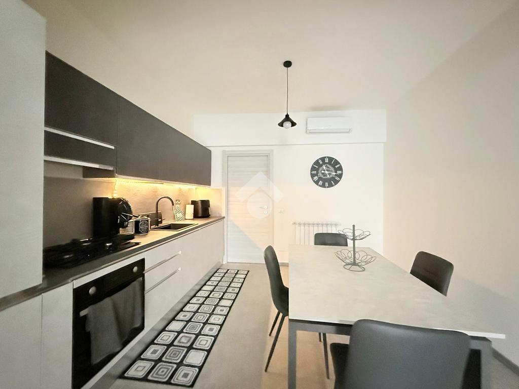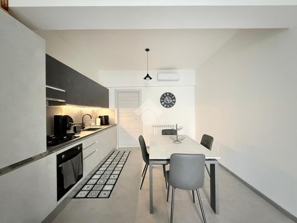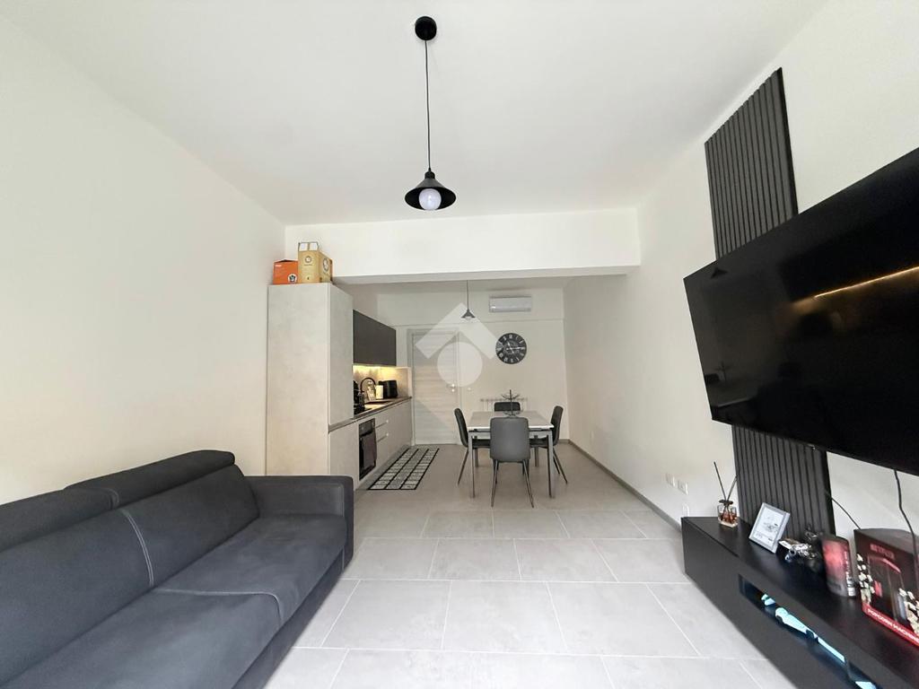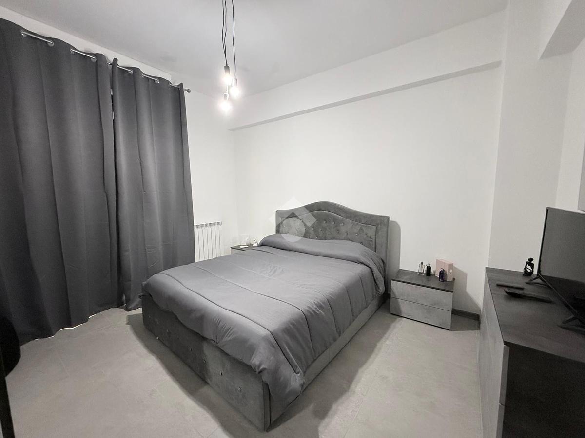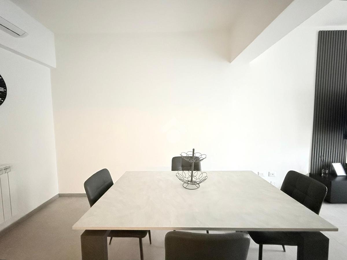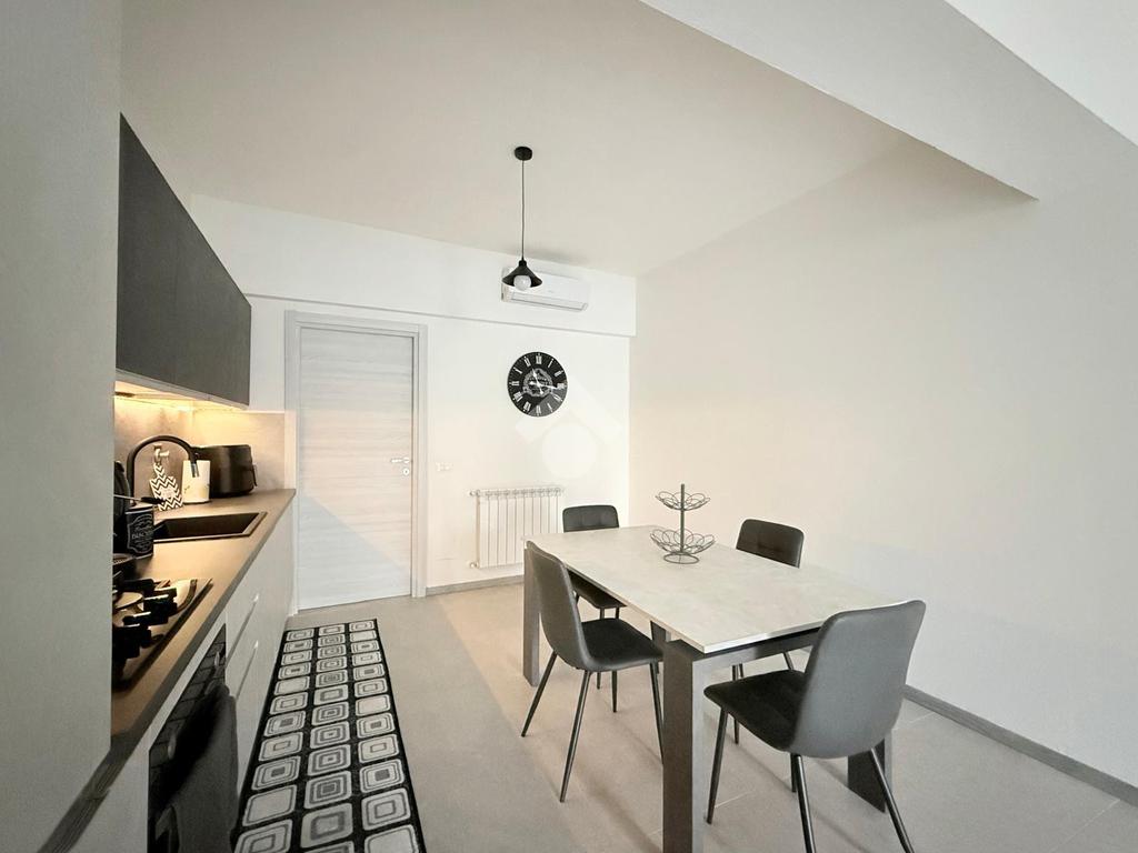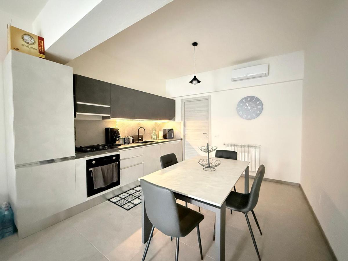 L'ingresso si apre su una luminosa zona giorno con soggiorno e cucina in open space, caratterizzata da un arredamento moderno e ben organizzato, pensato per sfruttare al meglio gli spazi.